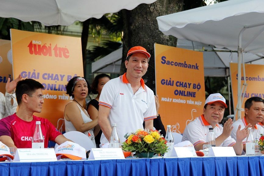Hà Nội, ngày 14/06/2020: Sacombank phối hợp với Báo Tuổi Trẻ tổ chức khai mạc Giải chạy trực tuyến hưởng ứng Ngày không tiền mặt 2020 tại Hà Nội, TP.HCM, Đà Nẵng và Cần Thơ. Chương trình tại Hà Nội có sự tham dự của ông Nguyễn Kim Anh - Phó Thống đốc Ngân hàng Nhà nước Việt Nam và hơn 1.000 vận động viên là y bác sĩ, người nổi tiếng, người yêu thể thao, khách hàng, cán bộ nhân viên Sacombank.