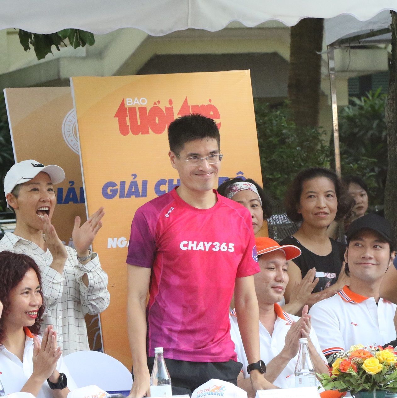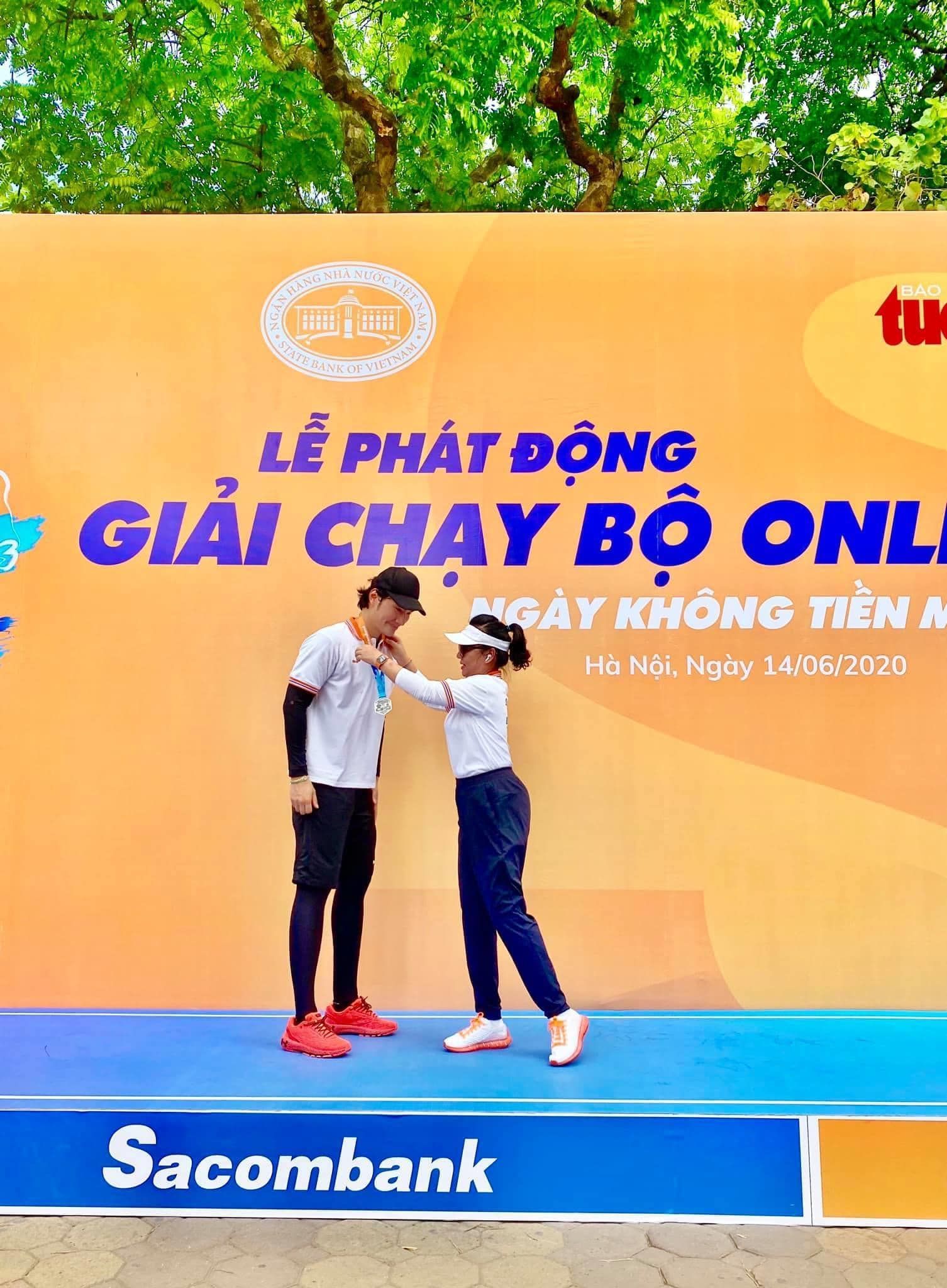 Điều đặc biệt của giải chạy này là thu hút được rất nhiều y bác sĩ, nghệ sĩ, vận động viên nổi tiếng tham gia. Trong hình là Nhà thiết kế - Doanh nhân trẻ Lý Quí Khánh. Lý Quí Khánh cũng là Gương mặt thương hiệu Sacombank 2020.